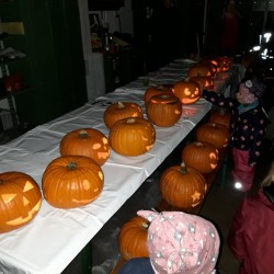 Die Kürbisse wurden zum Abschluss in der Halle – mit entsprechender Beleuchtung – komplett ausgestellt und die unterschiedlichen „Werke“ konnten bestaunt werden.